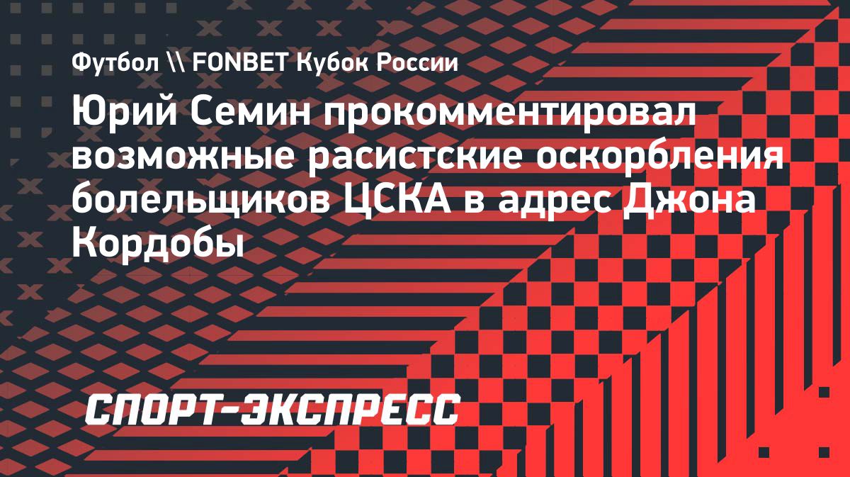 Бывший тренер сборной России Юрий Семин в разговоре с «СЭ» прокомментировал возможные расистские оскорбления болельщиками ЦСКА в адрес нападающего «Краснодара» Джона Кордобы в матче 1/2 финала Пути РПЛ FONBET Кубка России. Игра закончилась победой армейцев со счетом 3:1.